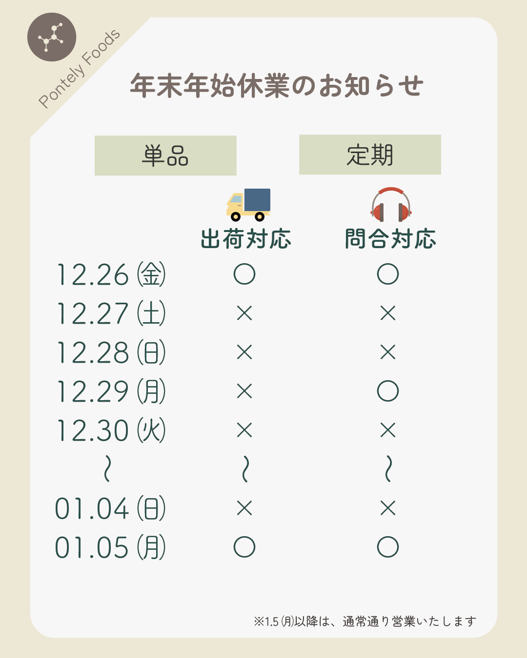 年末年始の営業に関してご案内申し上げます。ご案内が遅くなり申し訳ございません。