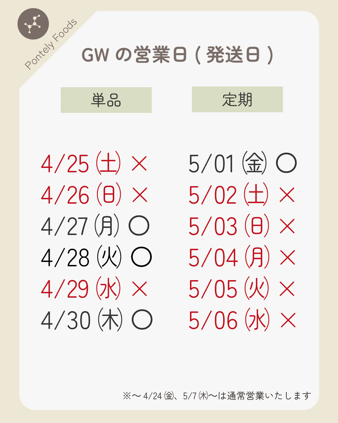 5/07(木) 以降通常営業